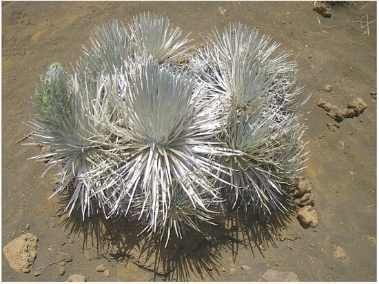 - Hawaiian Silversword Alliance, UH Botany. Argyroxiphium sandwicence DC. ssp. sandwicense. Available online: https://www.manoa.hawaii.edu/lifesciences/faculty/carr/ass.htm (accessed on 1 December 2024).