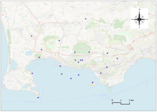 In the specific case, the comparison between the image in Figure 5 relating to the month of May 2024 and that relating to the 2005–2024 historical series showed a non-random concentration, which, however, confirmed the greater dispersion highlighted by the SDE in the case of the historical series (Figure 6a,b).