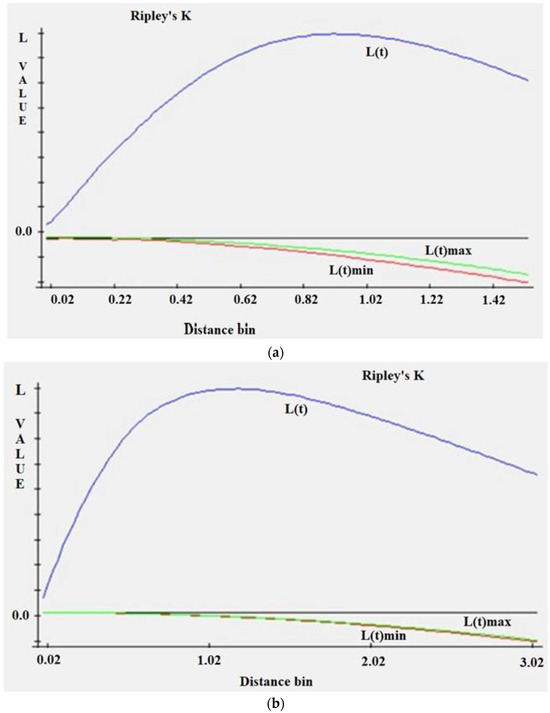 To complete the SDE analysis, Ripley’s K was evaluated in the compared scenarios.