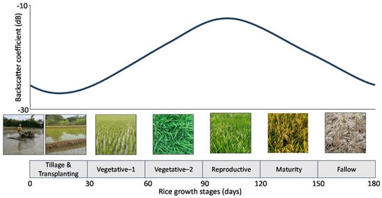 Ideal representation of the relationship between rice growth phases and the SAR backscatter response.