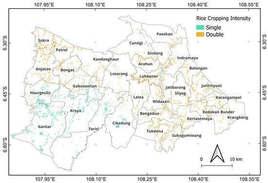 Rice cropping zone during 2020–2021 in Indramayu Regency.