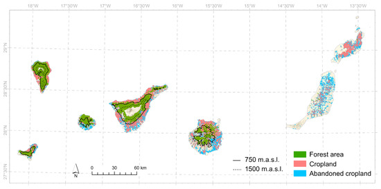 Forest area and cropland in the Canary Islands. Sources: [12,58,59].