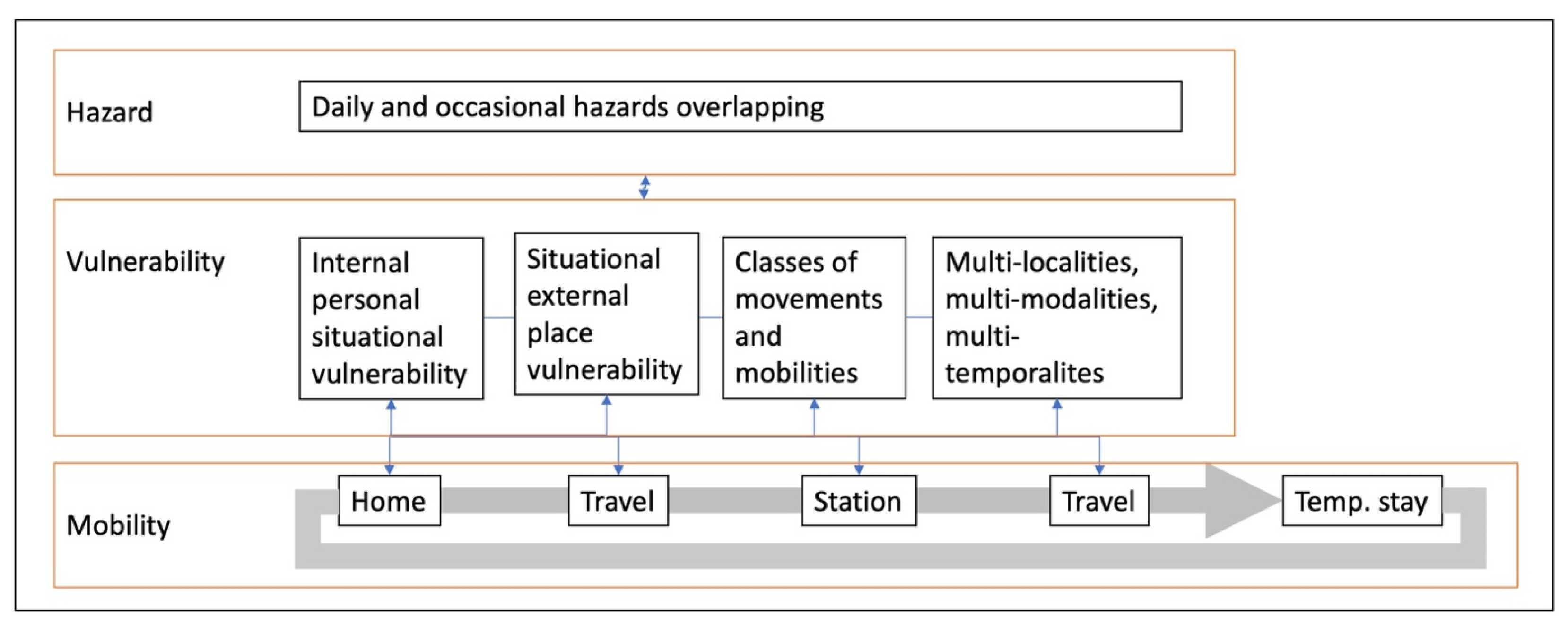 However, there are a few studies identified that specifically analyse how the specific situation during mobility, being on the move, travelling, or in transition, imposes vulnerabilities on specific social groups or individuals. In contrast to the numerous studies on static place-based approaches, which primarily focus on identifying groups of people or individuals at their homes or other static locations, this study advocates for more research into mobility vulnerability.