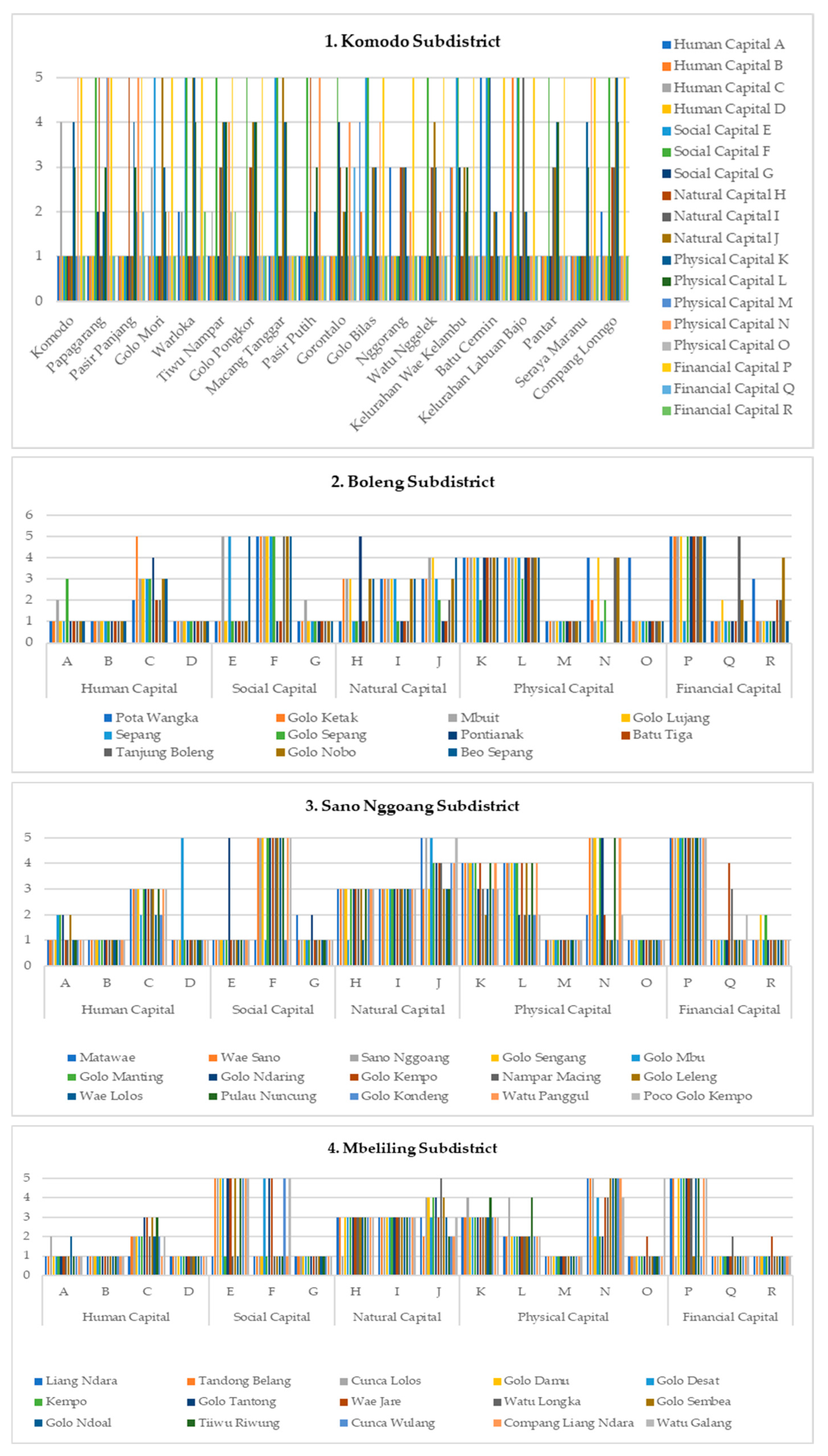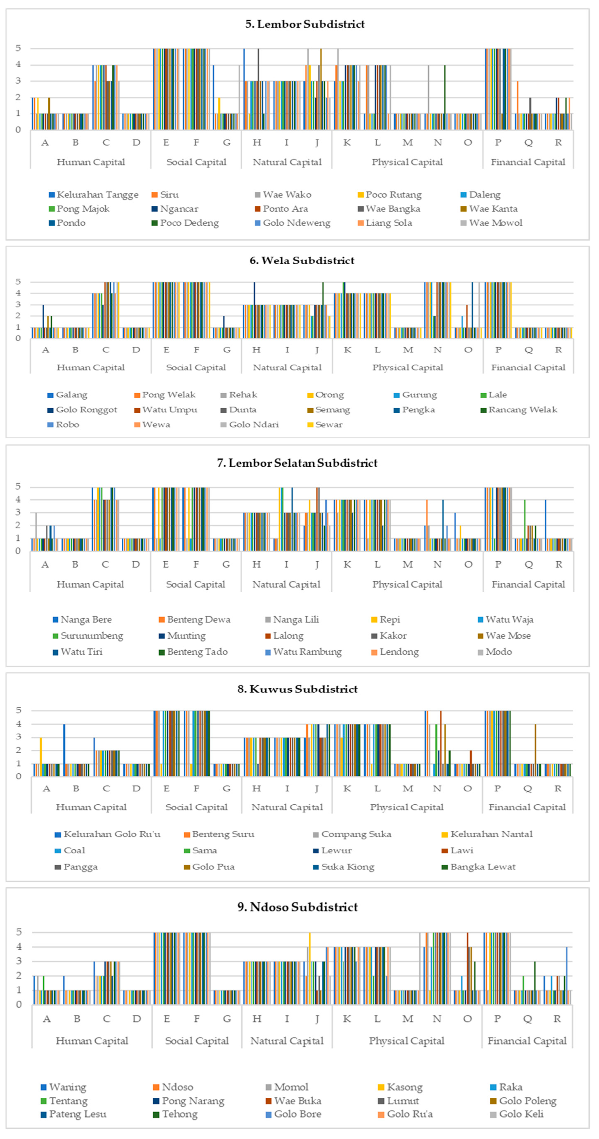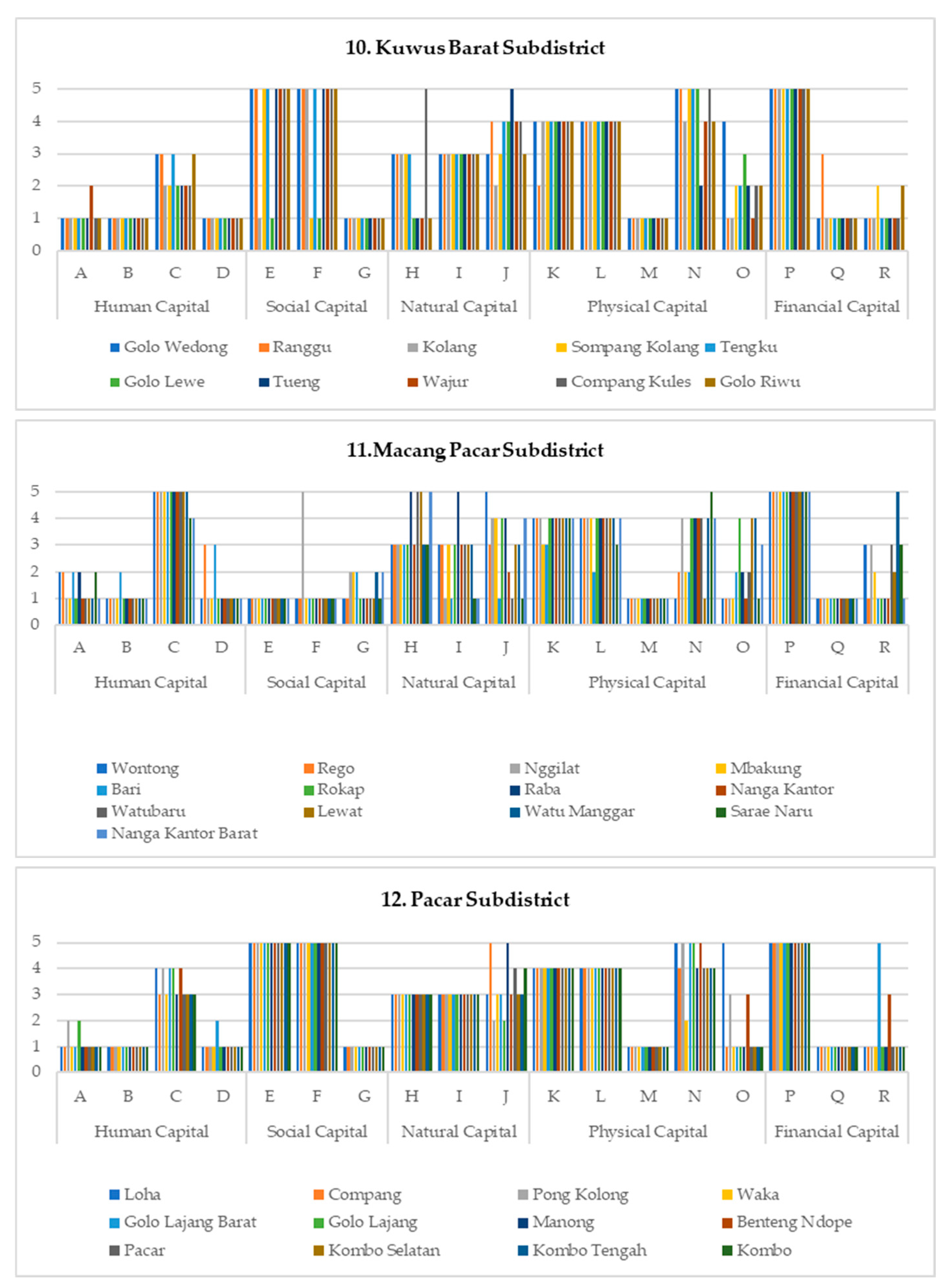 - Financial Capital: Access to financial credit (P), presence of village-owned enterprises (BUMDes) (Q), and access to banking services (R).