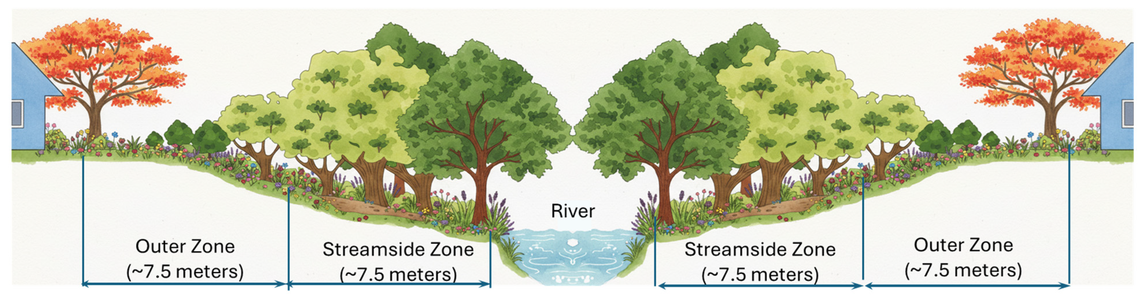 - Décamps, H.; Pinay, G.; Naiman, R.J.; Petts, G.E.; McClain, M.E.; Hillbricht-Ilkowska, A.; Hanley, T.A.; Holmes, R.M.; Quinn, J.; Gibert, J.; et al. Riparian zones: Where biogeochemistry meets biodiversity in management practice. Polish J. Ecol. 2004, 52, 3–18. [Google Scholar]