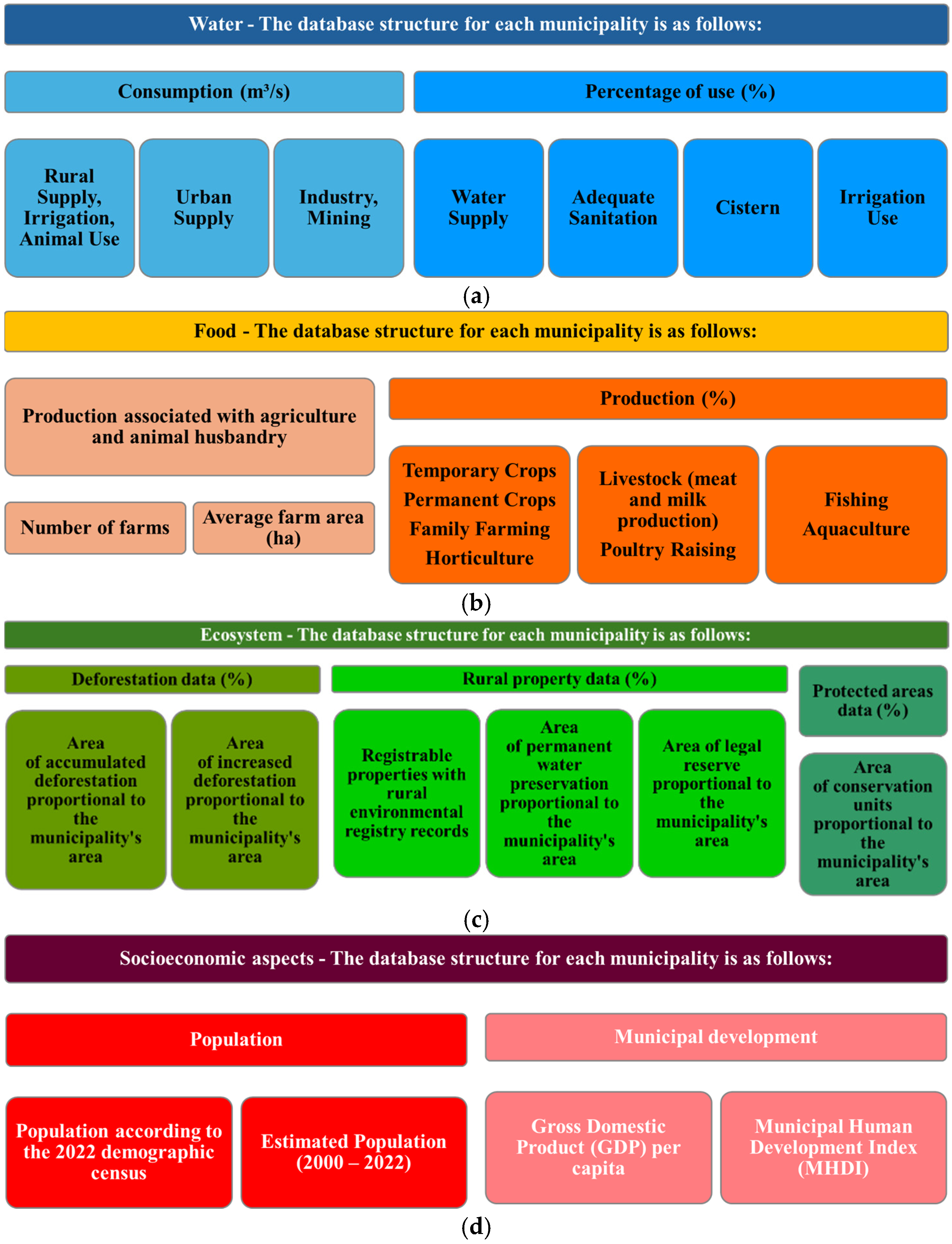 - Arcoverde, G.F.B.; Menezes, J.A.; Paz, M.G.A.; Barros, J.D.; Guidolini, J.F.; Branco, E.A.; Andrade, P.R.; Pulice, S.M.P.; Ometto, J.P.H.B. Sustainability assessment of Cerrado and Caatinga biomes in Brazil: A proposal for collaborative index construction in the context of the 2030 Agenda and the Water-Energy-Food Nexus. Front. Phys. 2023, 10, 1060182. [Google Scholar] [CrossRef]