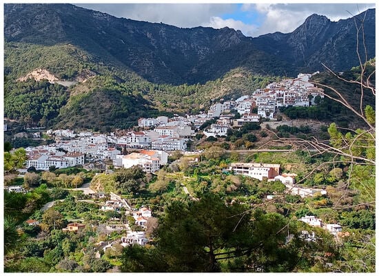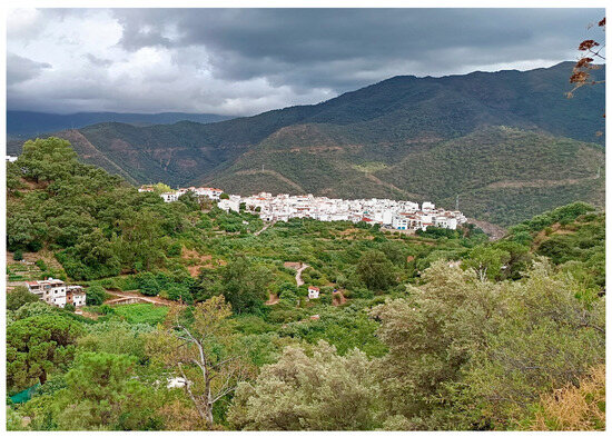 These municipalities (Figure 2, Figure 3 and Figure 4), characterized by their mountainous setting due to their location on the piedmont yet close to the coast—the distance from the urban centers of Ojén and Istán to the shoreline is only 10 and 15 km, respectively—have historically depended on agricultural activities. However, these activities have undergone significant abandonment as a result of the socio-economic shift in the Costa del Sol toward mass sun-and-beach tourism in recent decades. Today, this is one of the most dynamic coastal areas in Spain, with recognized urban centers such as Marbella, within whose sphere of influence the aforementioned municipalities are located.
