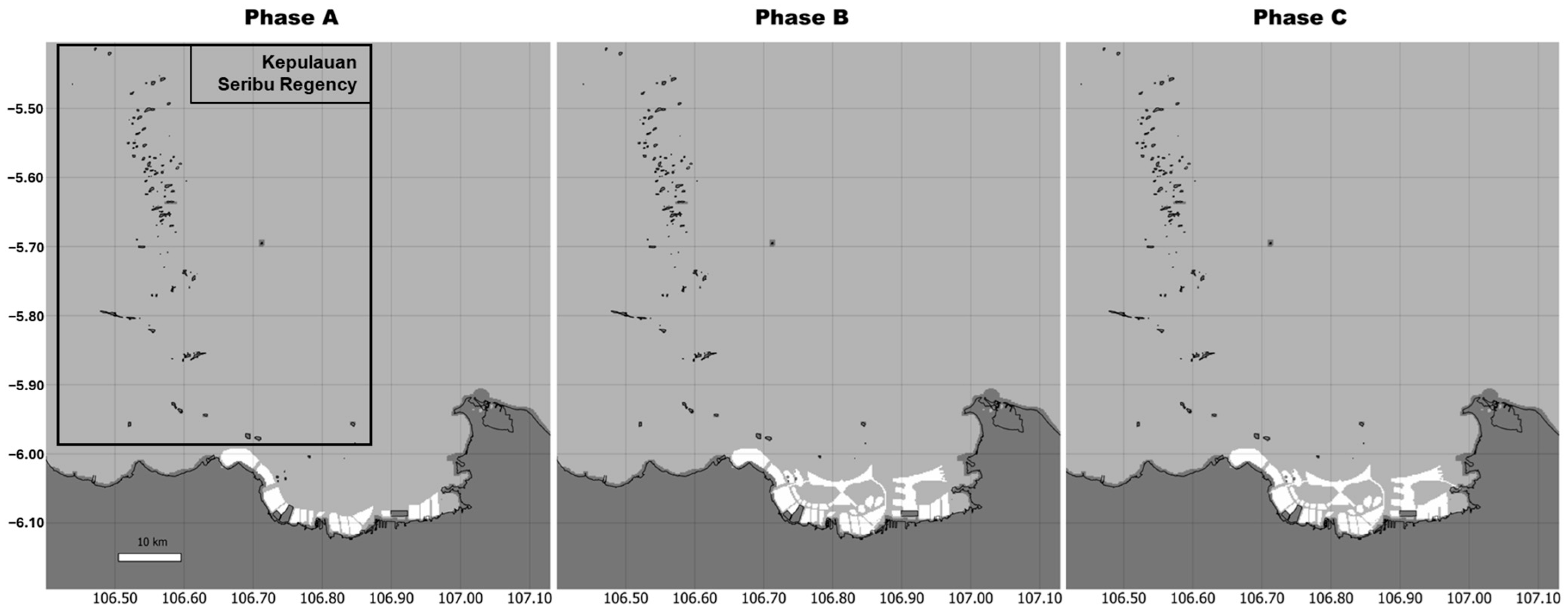 - Hidayatno, A.; Dinianyadharani, A.K.; Sutrisno, A. Scenario Analysis of the Jakarta Coastal Defence Strategy: Sustainable Indicators Impact Assessment. Int. J. Innov. Sustain. Dev. 2017, 11, 37–52. [Google Scholar] [CrossRef]