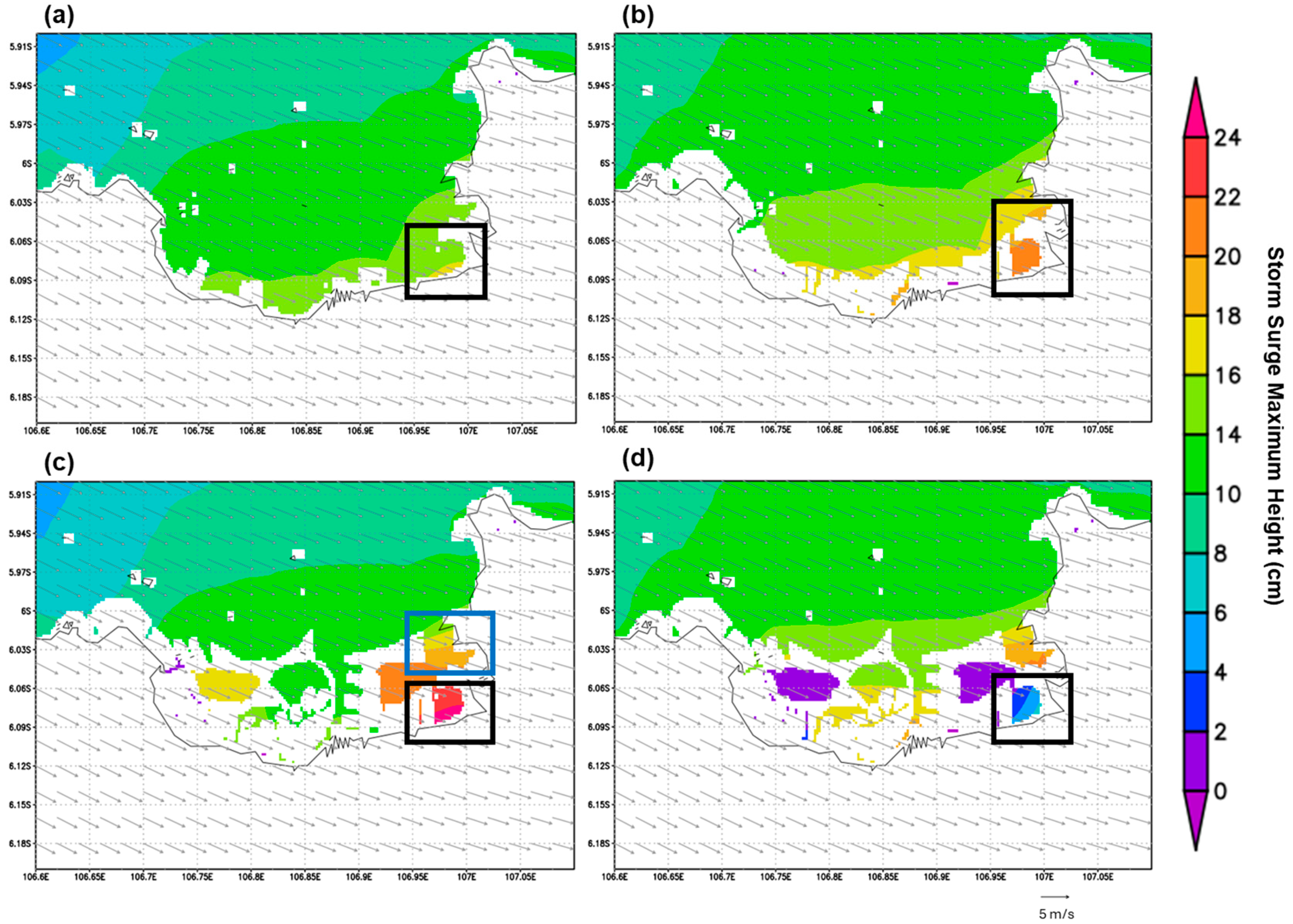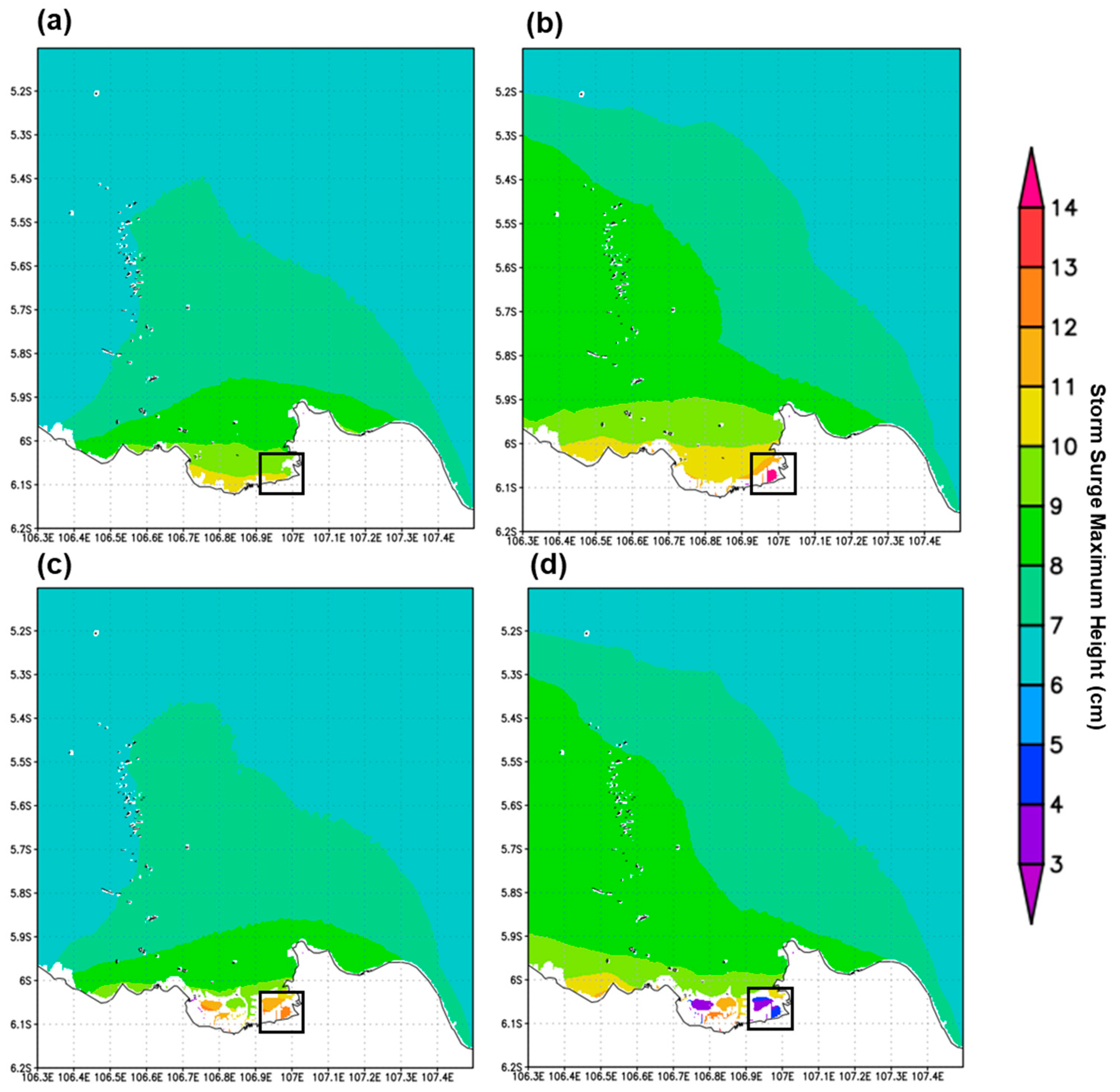 3.3. Results of Storm Surge Simulations