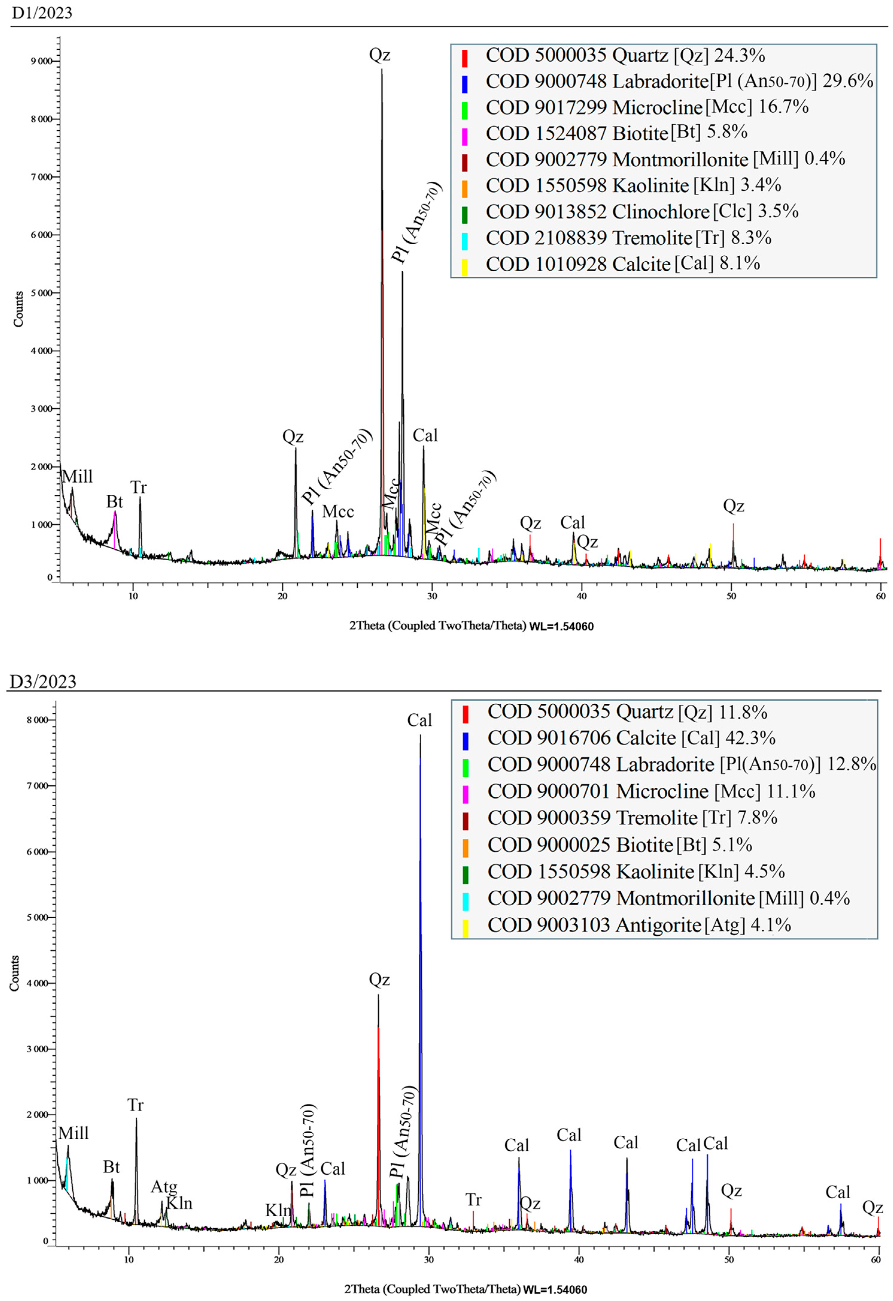 4.3. XRD of Clay and Silt Fraction