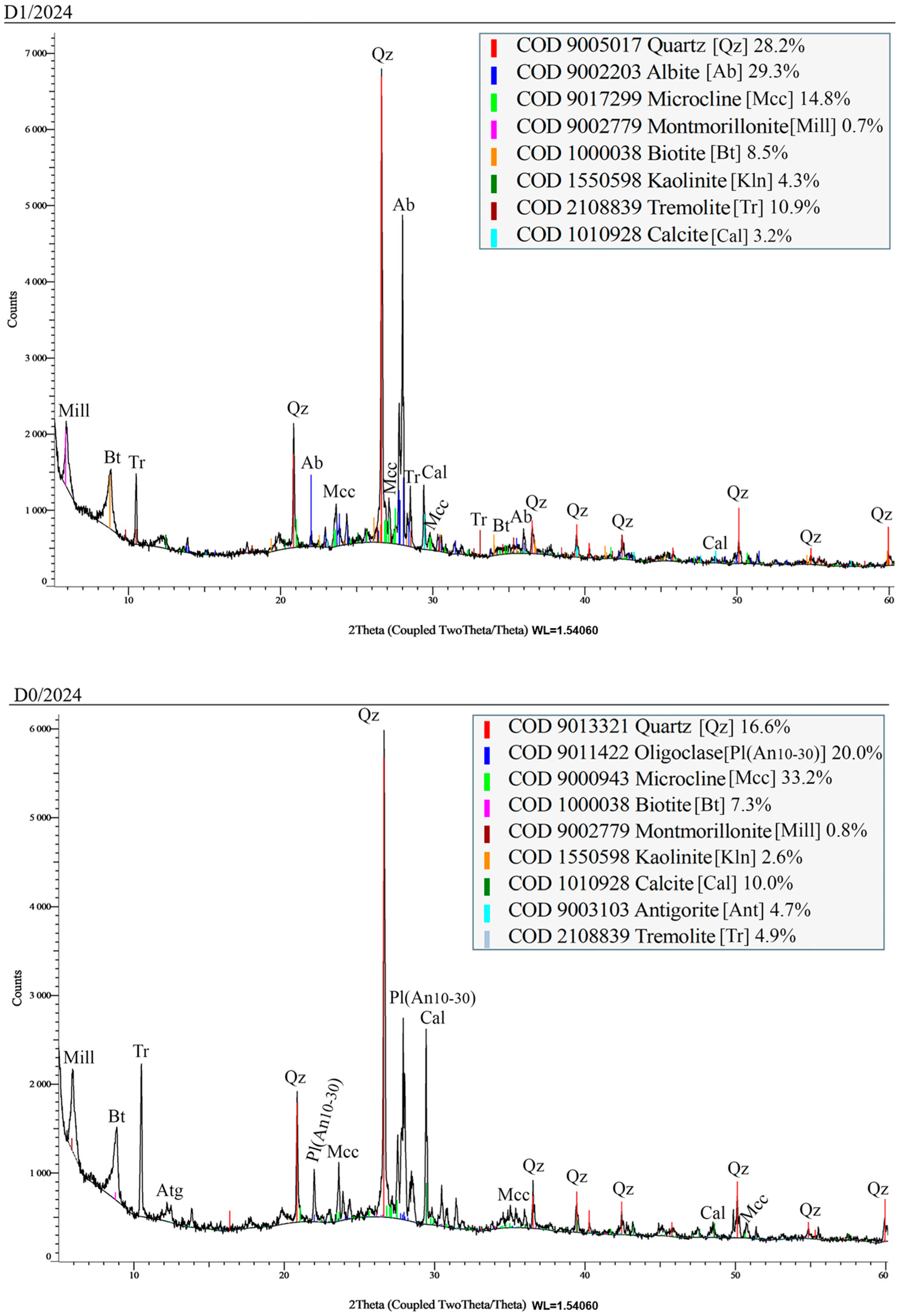 - Repczyńska, M.M.; Molina, J.F.; Cambeses, A.; Montero, P.; Bea, F.; Itano, K.; Pujol-Solà, N.; Novo-Fernández, I.; Barcos, L.; Garcia-Casco, A. Geochemical behaviour of biotite during interaction with aqueous and brine fluids: Constraints from hydrothermal batch experiments. Chem. Geol. 2025, 672, 122486. [Google Scholar] [CrossRef]
