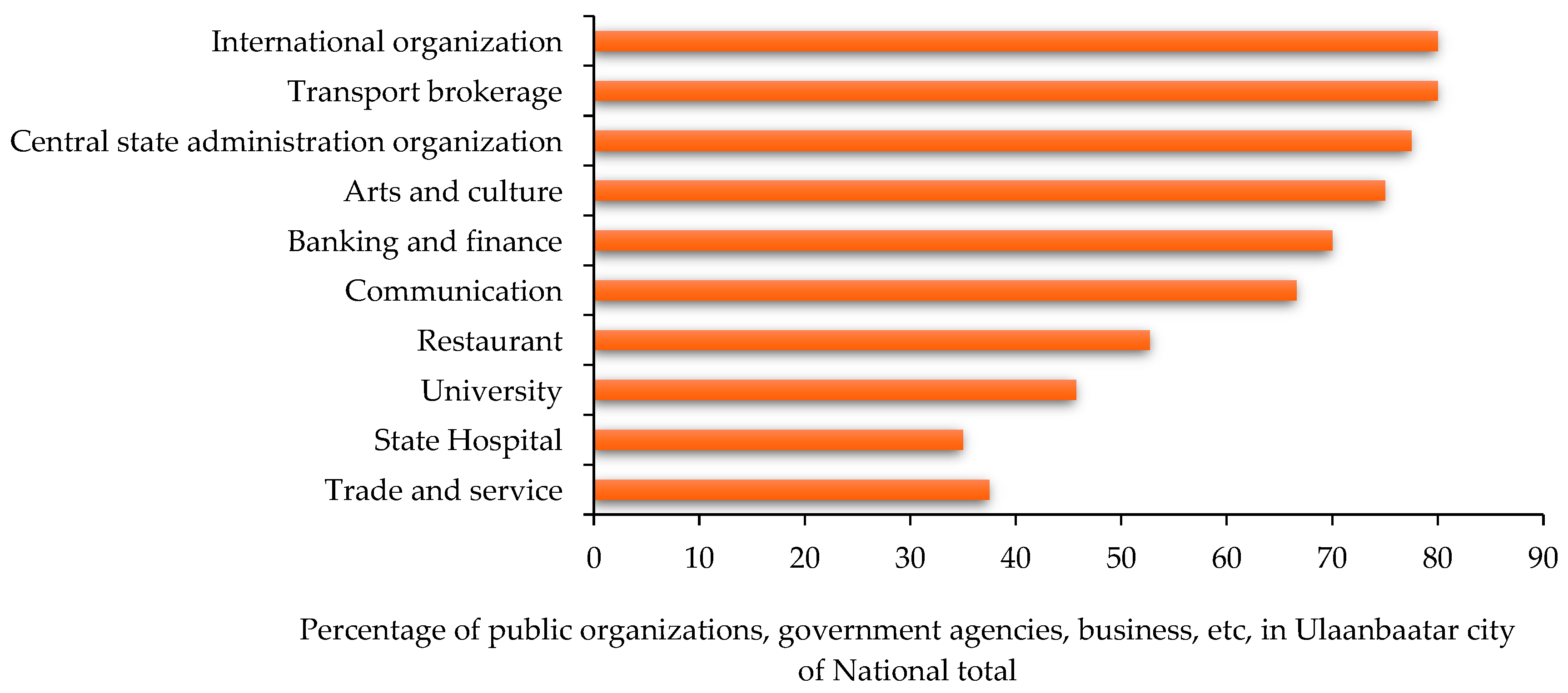 Over 60% of Mongolia’s urban population and 90% of its national institutions are concentrated in UB, including governmental and international organizations.