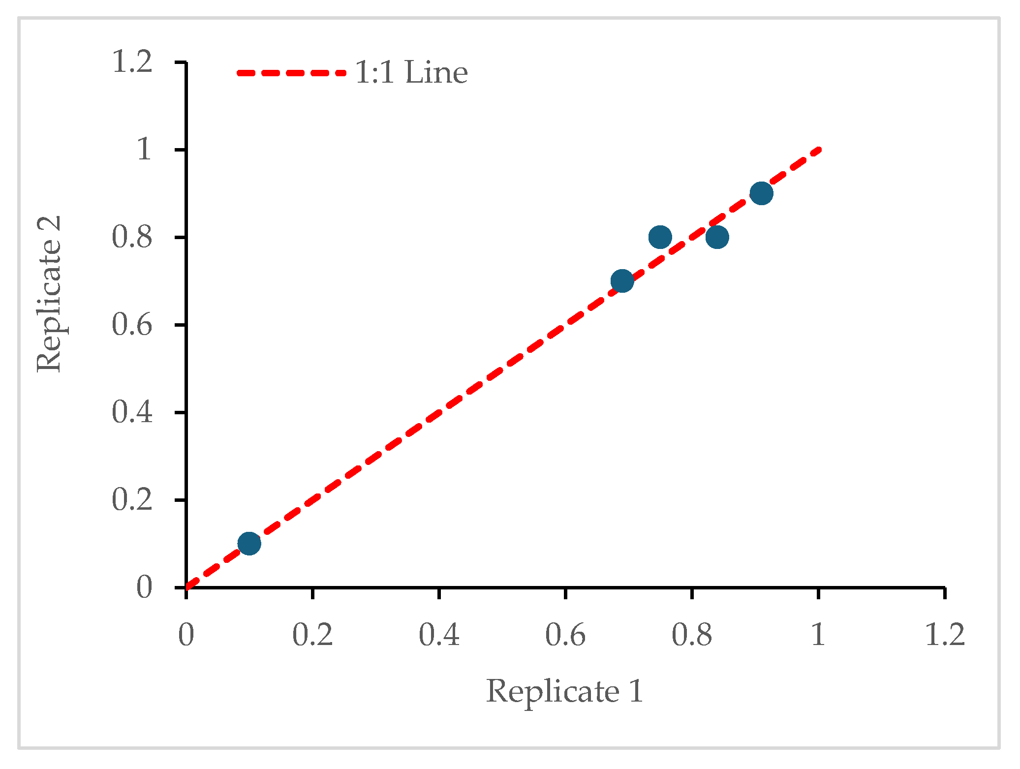 Figure 4 to demonstrate strong agreement between replicate measurements.