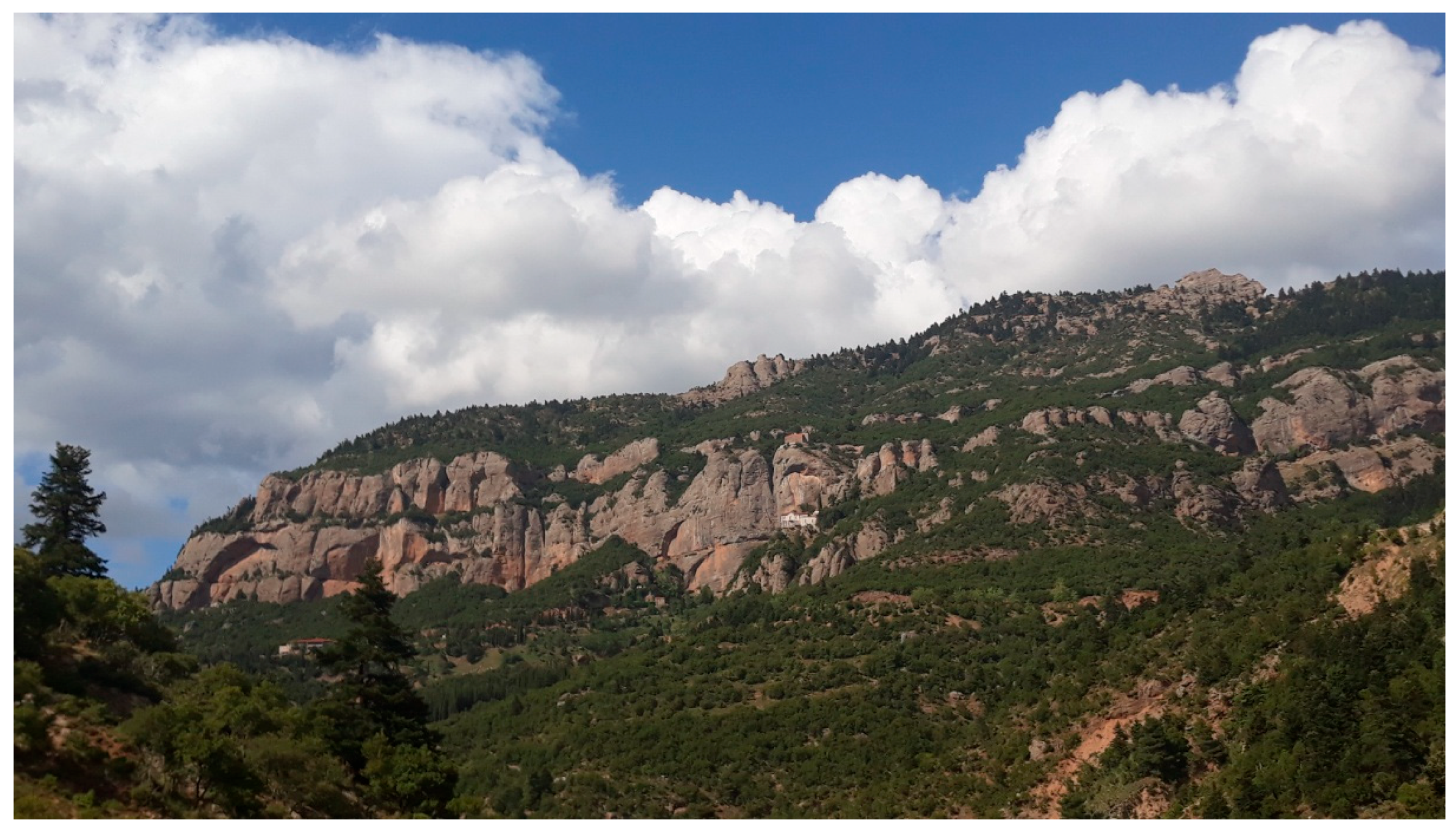 - European Environment Agency (EEA). Mediterranean Mountain Abies Forests (G1.7A). EUNIS Habitat Classification; European Environment Agency: Copenhagen, Denmark, 2016. [Google Scholar]