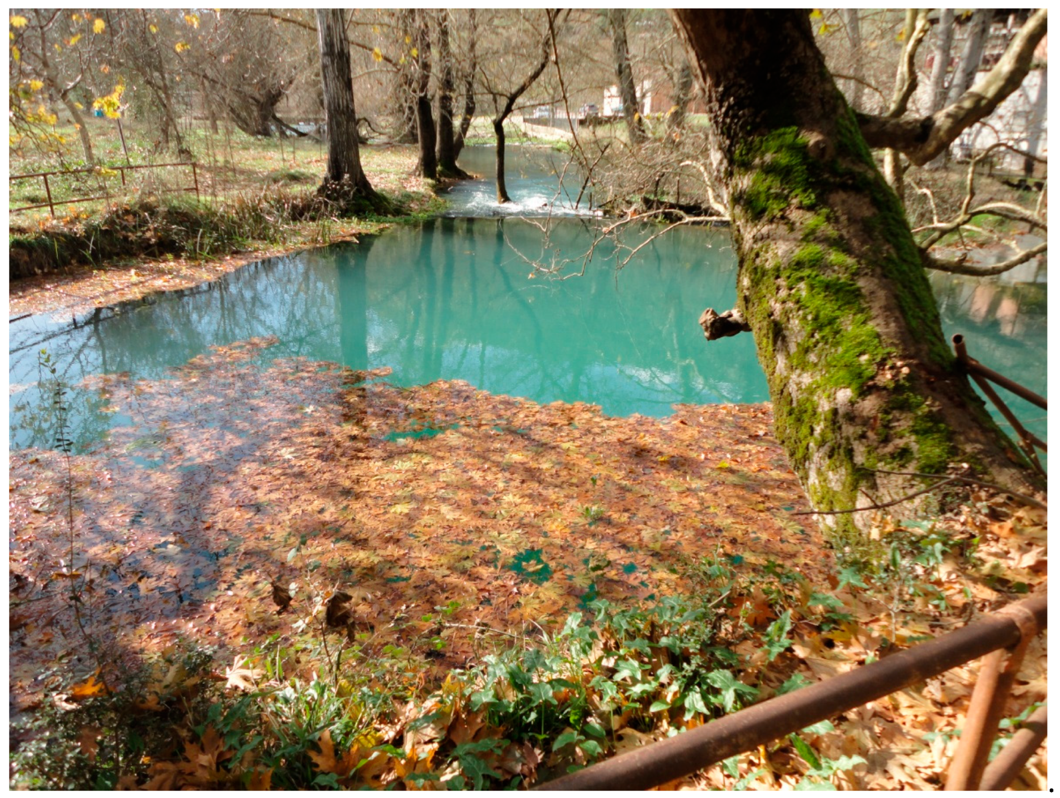 - Koutsi, R.; Stournaras, G. Hydrochemical Investigation of Water at Loussi Polje, N Peloponnesus, Hellas. In Advances in the Research of Aquatic Environment; Springer: Berlin/Heidelberg, Germany, 2011; pp. 219–227. [Google Scholar]
