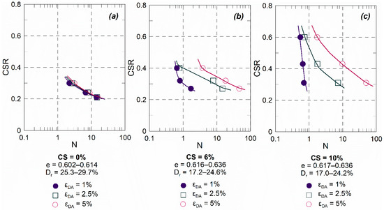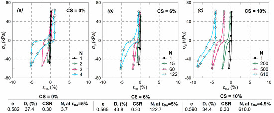 - CS-stabilized specimens exhibit increased deformation resistance to cyclic loading as compared to the untreated, which experience much larger εDA in fewer cycles; and
