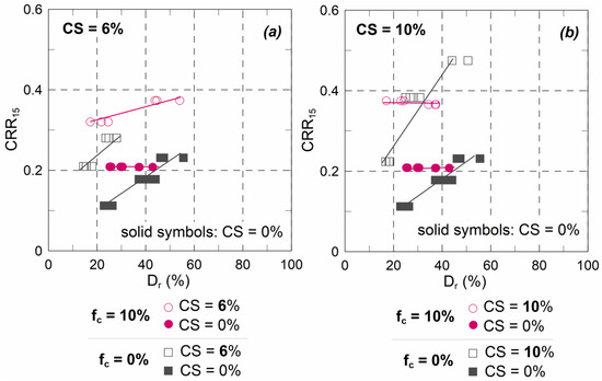 - CS stabilization of silty sand results in significantly increased liquefaction resistance as compared to the corresponding of the untreated silty sand. An increase in CS from 6% to 10% results in further improved CRR15 values only at Dr < 40%. At higher densities, the liquefaction resistance for both CS concentrations practically coincides;