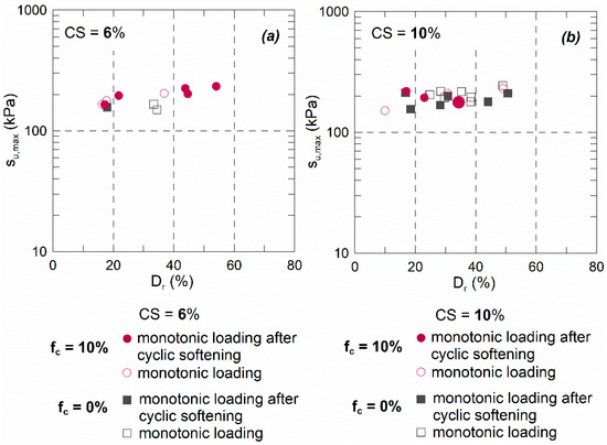 - Under undrained monotonic loading, the CS-stabilized silty sand exhibits brittle behaviour and increased maximum strength as compared to the strain-hardening behaviour of the untreated silty sand. Furthermore, for the studied range of densities, the su of the stabilized specimens is significantly higher, up to 6.7 times the corresponding su of the untreated silty sand, under the same p′0;