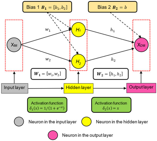 Huang et al. [73] presented an analytical framework for the development of fragility curves for the assessment of circular tunnels in soft soils, involving an Artificial Neural Network (ANN) to develop the PSDM (i.e., the relation between a damage measure (XDM) and an intensity measure (XIM), Figure 5). A circular tunnel embedded in a deep soft soil deposit, examined in a previous study by the researchers (Huang et al., [54]), was employed as a case study. The data required to train ANN were derived via a numerical framework that included 2D dynamic analyses of the examined system for 12 ground motions, scaled at various levels of ground motion, as discussed in Huang et al. [65]. The proposed ANN included an input layer that receives the information (i.e., the intensity measure XIM), a hidden layer that transforms the input and lead to the output (i.e., the damage measure XDM) that is displayed in an output layer. Weights were assigned and adjusted to connect the neurons between the different layers, whereas bias parameters were set to prevent the model from outputting null values by zero inputs. Finally, activation functions were used to establish the nonlinear correlations between input and output neurons. After training, using the connecting weights and biases, as well as the activation functions, the following PSDM model was derived: