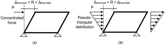 Simplified frame analysis models proposed by Wang [64], (a) concentrated force, (b) triangular distribution (redrawn after Huo et al. [76]).