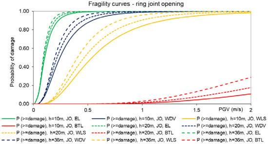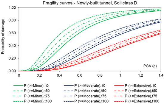 Salmon et al. [57] presented analytical fragility curves for cut and cover tunnels subjected to ground shaking and fault movement (the latter for the Berkeley Hills tunnels, subjected to the potential effect of the nearby Hayward fault).