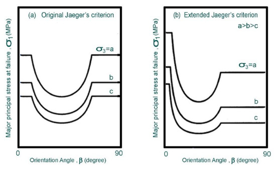 - Lee, Y.K.; Pietruszczak, S. Application of critical plane approach to the prediction of strength anisotropy in transversely isotropic rock masses. Int. J. Rock Mech. Min. Sci. 2008, 45, 513–523. [Google Scholar] [CrossRef]