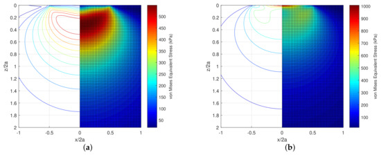 - Forsbach, F. Stress Tensor and Gradient of Hydrostatic Pressure in the Half-Space Beneath Axisymmetric Bodies in Normal and Tangential Contact. Front. Mech. Eng. 2020, 6, 39. [Google Scholar] [CrossRef]