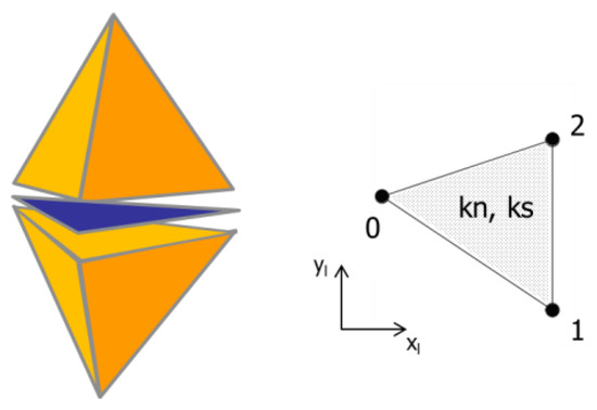 Triangle joint element in small displacements in a mesh of tetrahedral finite elements.