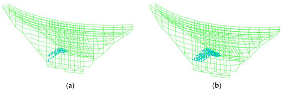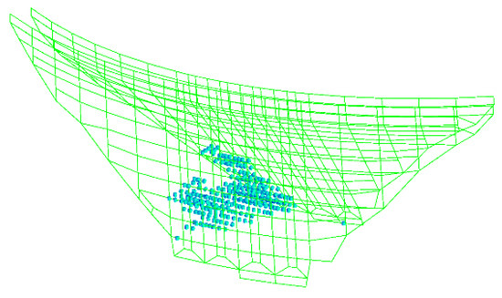 Modeling of the grout curtain and of the drainage system follows the same assumptions adopted in the 2D hydraulic model [8,35]. Therefore, taking into account the location of the grout curtain, the pseudo seepage channels located in that area are identified, and their permeability is assumed to be about 10 times lower than that of the surrounding rock mass. The location of the drainage system allows the numerical hydraulic nodes to be identified, in which the water pressure is assumed, usually the average water pressure measured in situ.