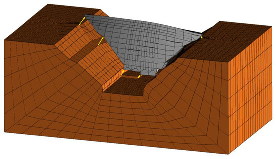 Fully coupled two-dimensional (2D) hydromechanical analyses of the water flow through the rock mass discontinuities of operating dams were presented by several authors [6,7,8,9], some of them allowing the comparison between numerical results and those recorded in situ. The majority of these studies use discontinuum models, which simulate the hydromechanical interaction and therefore provide a means of assessing the stability of the dam, taking into account the actual shear displacements and aperture of discontinuities, and the water pressure pattern within the foundation.