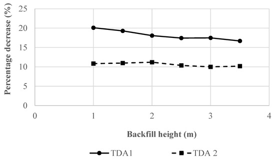 Effect of the pipe diameter and backfill height on the percentage decrease of the maximum bending moment for the TDA 2.