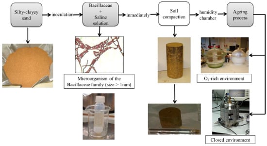 - Morales, L.; Garzón, E.; Romero, E.; Jommi, C. Effects of a microbiological compound for the stabilisation of compacted soils on their microstructure and hydro-mechanical behaviour. In Proceedings of the 5th International Conference on Unsaturated Soils, Barcelona, Spain, 6–8 September 2010; pp. 573–578. [Google Scholar]
