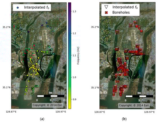 3.3. Estimation of f0 at Each Borehole by Spatial Interpolation