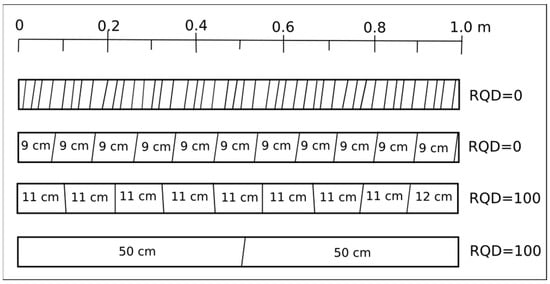 Example of minimum and (0%) and maximum (100%) RQD values (according to the critique of Palmström [39]).