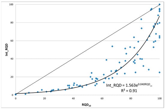 Functional relationship between Integrated RQD (Int_RQD) and conventional RQD10.