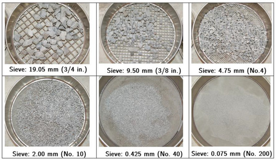 In accordance with the stringent protocols governing soil-embedded barriers and containment system crash tests, steel piles are frequently embedded in granular soils, hereafter referred to as granular (MASH strong) soil. As shown in Figure 1, the granular (MASH strong) soil exhibits heterogeneity in grain sizes, characterized by a spectrum of angular to subangular particles, spanning dimensions from 19.05 mm down to silt-sized particles. Through the lens of the Unified Soil Classification System (USCS), granular (MASH strong) soil can be systematically classified under the well-graded gravel (GW) category.