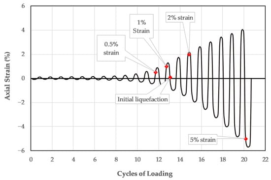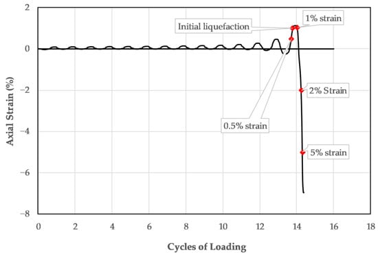 L, when the liquefaction criterion is first met (e.g., if 1% single-amplitude axial strain is chosen as the liquefaction criterion, N