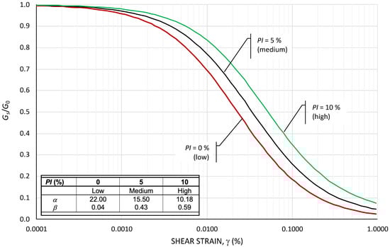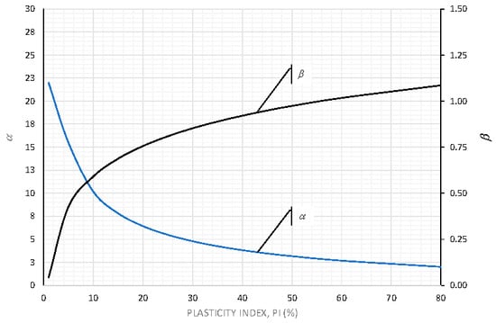 PI = plasticity index. According to Equations (2) and (4), in granular soils,