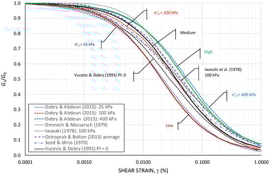 8] demonstrated that small-strain stiffness parameters can be determined reliably from different seismic tests. He presented a constitutive framework within which geotechnical analyses can be carried out based on seismic measurements. Numerical methods can simulate highly complex loading conditions. However, an essential aspect of the numerical modeling process is the selection of a realistic constitutive model, as the chosen input parameters have a significant influence on the outcome of the analysis. It is not uncommon in design that complex analytical methods are chosen, yet over-simplified input parameters of soil stiffness are assumed. Therefore, the results of numerical analyses should be verified by parameter studies of critical input parameters (soil stiffness, stress state, and stress history) [