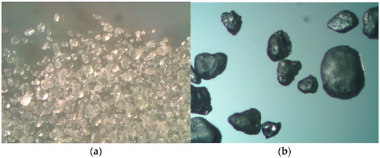 Microscopic images of Ottawa sand particles; (a) general view of Ottawa sand particles; (b) detailed view of dispersed Ottawa sand particles [23].