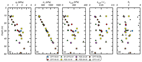- Mayne, P.W.; Peuchen, J. Evaluation of CPTU Nkt cone factor for undrained strength of clay. In Proceedings of the Fourth Internation Symposium on Cone Penetration Testing, Delft University of Technology, Delft, The Netherlands, 21–23 June 2018. [Google Scholar]