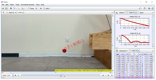 Snapshot of the Tracker software during the analysis of one of the spherical samples at a release angle of 15° [31].