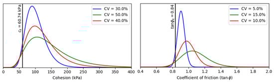 As the coefficient of variation can be known from prior knowledge only based on evaluation of previous tests conducted in comparable situations, in many design situations, this approach will not be applicable due to a lack of reference data. Furthermore, the alternative approach, based on the lack of initial assumptions about the ground property variability, will often lead to very conservative estimates. Therefore, indicative values of Vx were proposed in EN 1997-1 [2], as presented in Table 6, which are expected to be used most often. However, it should be noted that, even in this case, as the range of values is provided, some level of expert judgement must be utilized.