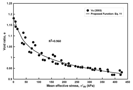 The reviewed literature suggests that most mathematical equations proposed for the void ratio surface require between three and eight constants to achieve the best fit to experimental data. In general, a larger number of fitting parameters improves the accuracy of constitutive relationships in representing experimental results. However, an excessive number of parameters can lead to a loss of physical interpretability of the equations [].