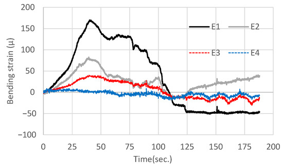 Time histories of the bending strain for Case D-1.