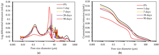 Next, the Mercury Intrusion Porosimeter (MIP) technique was adopted to analyze the fabric and porosity of the soil samples using the Micromeritics AutoPore IV 9500 (Micromeritics Instrument Corporation, Norcross, GA, USA) apparatus. This technique enables the determination of a wide range of pore sizes, ranging from a few nanometers to several tens of micrometers, and allows for the identification of different types of soil pores. The principle behind this technique is the intrusion of mercury into a porous structure under carefully controlled pressures, following the capillary law that governs the penetration of liquid into small pores. In the case of a non-wetting liquid like mercury, this law is expressed by the Washburn equation (Equation (3)).