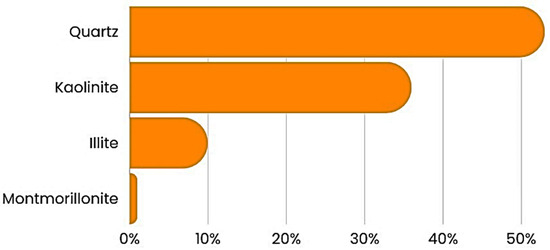 The material used in the study was laboratory-reconstituted kaolinitic clay. Ruge et al. [25] extensively analysed this same material, where more details on mineralogy and microstructure can be found. Figure 4 shows the soil composition used for the number of minerals found.