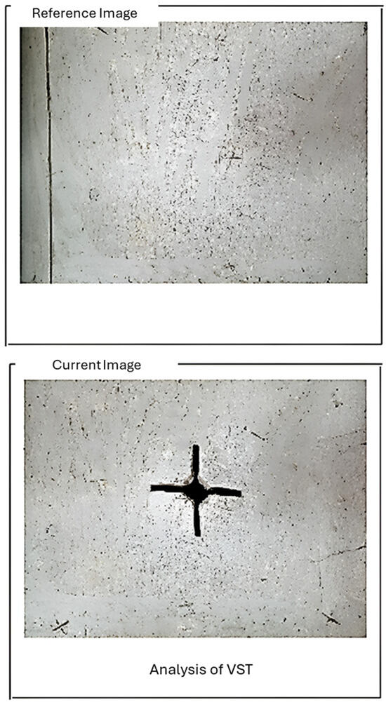 For image analysis, a software known as Ncorr (version 1.2) was used. Ncorr is an open-source software programme designed for two-dimensional digital image correlation, developed within the MATLAB R2024a environment. This programme encompasses a suite of algorithms that facilitate advanced image analysis, all of which are integrated within the MATLAB framework. The computationally intensive algorithms have been optimised using C++/MEX, enhancing processing efficiency and performance. This combination of high-performance algorithms and a user-friendly interface makes Ncorr a valuable tool for researchers and practitioners engaged in the field of image correlation and analysis. The 2D digital image correlation is performed using the studies of [27,28,29] as a reference, employing free license software. To start the analysis, the image must be loaded to serve as a reference for calculating changes in the pixels, equivalent to before the insertion. Then, it will be necessary to load the current image, comparable to after the insertion of the vane; this will allow us to move to the next step, defining the region of interest, as shown in Figure 7.