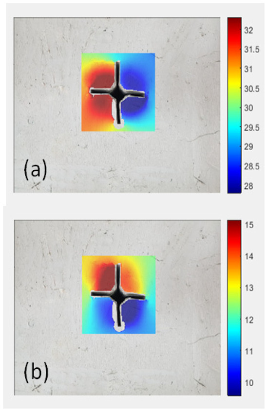 After executing the previous step, the analysis process takes approximately 90 to 150 min for each image. In total, 18 analyses were conducted. Once the analysis is complete, the programme displays displacement detection through a graphical representation on a colour scale. At this stage, users can define conversion units from a reference image, transforming pixels into centimetres or any preferred unit (see Figure 10).