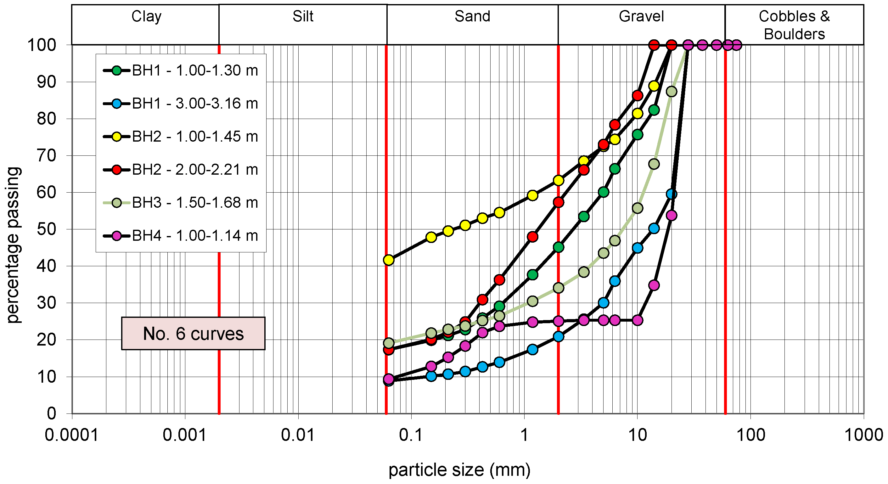 - Eight Standard Penetration Tests (SPTs), carried out during drillings in accordance with BS 1377-9 [41];